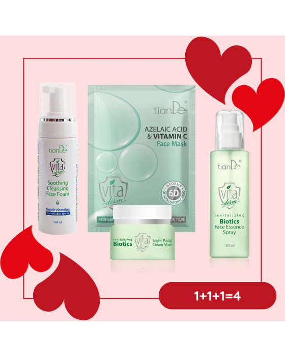 Az érzékeny arcbőr különleges odafigyelést igényel. A tianDe Vita Derm termékcsalád kifejezetten az irritációra, kipirosodásra és bőrkomfort-hiányra hajlamos bőr igényeire lett kifejlesztve. Ez a komplex arckezelési csomag gyengéden tisztít, mélyen regenerál és segít helyreállítani a bőr természetes egyensúlyát.